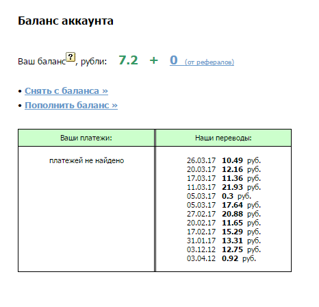теперь я вывожу по 10 рублей в неделю, очень неплохо если считать что мой сайт новый и не столь популярный